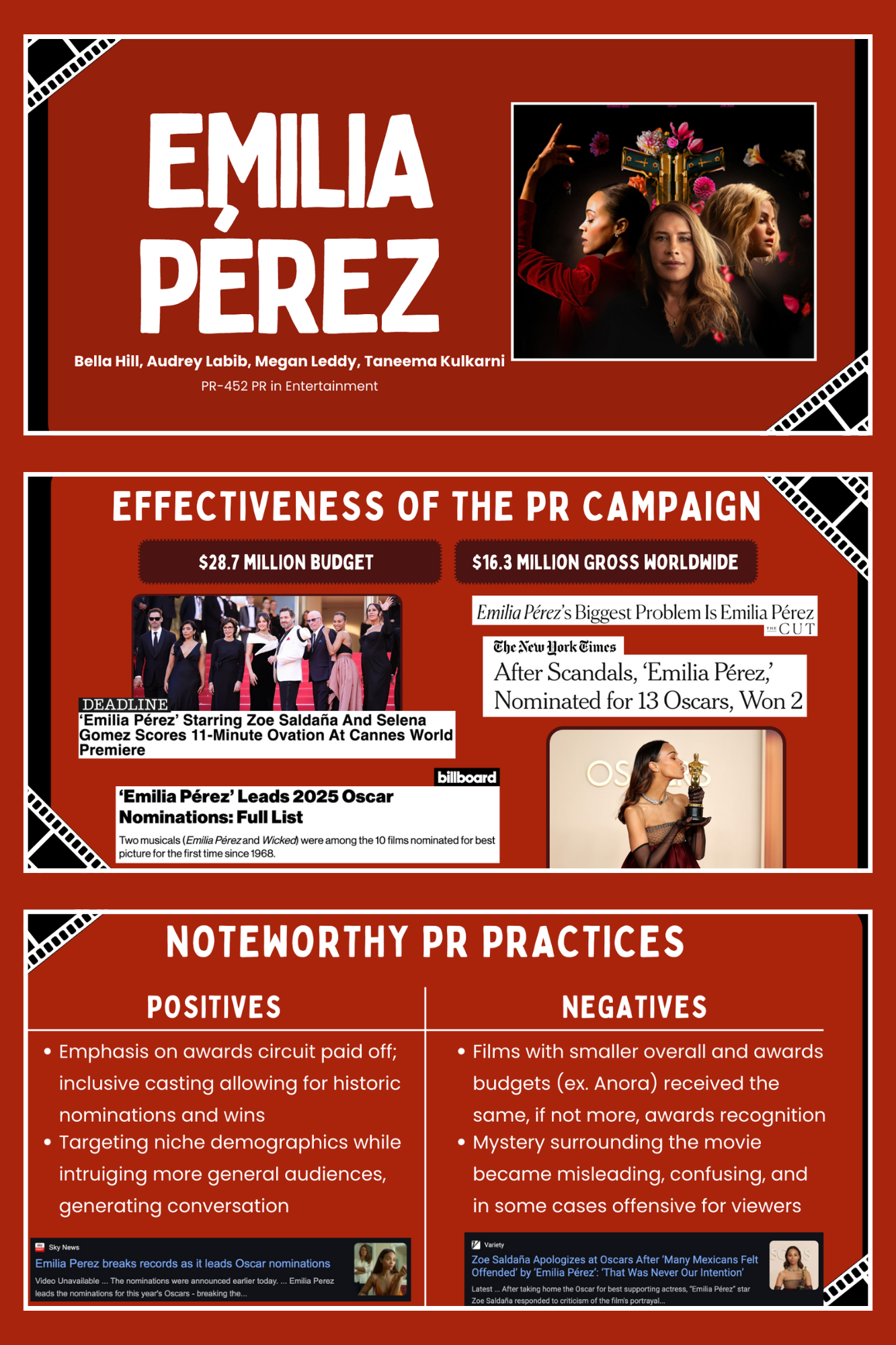 My group and I conducted a case study on the film Emilia Pérez, analyzing the negative publicity it received and evaluating the effectiveness of the film’s PR strategy. We examined key public relations actions and audience reactions, identifying both strengths and shortcomings in the campaign. My team also proposed ways the film could reframe its narrative, emphasizing the significance of transgender representation and the importance of research-driven storytelling in shaping public perception.